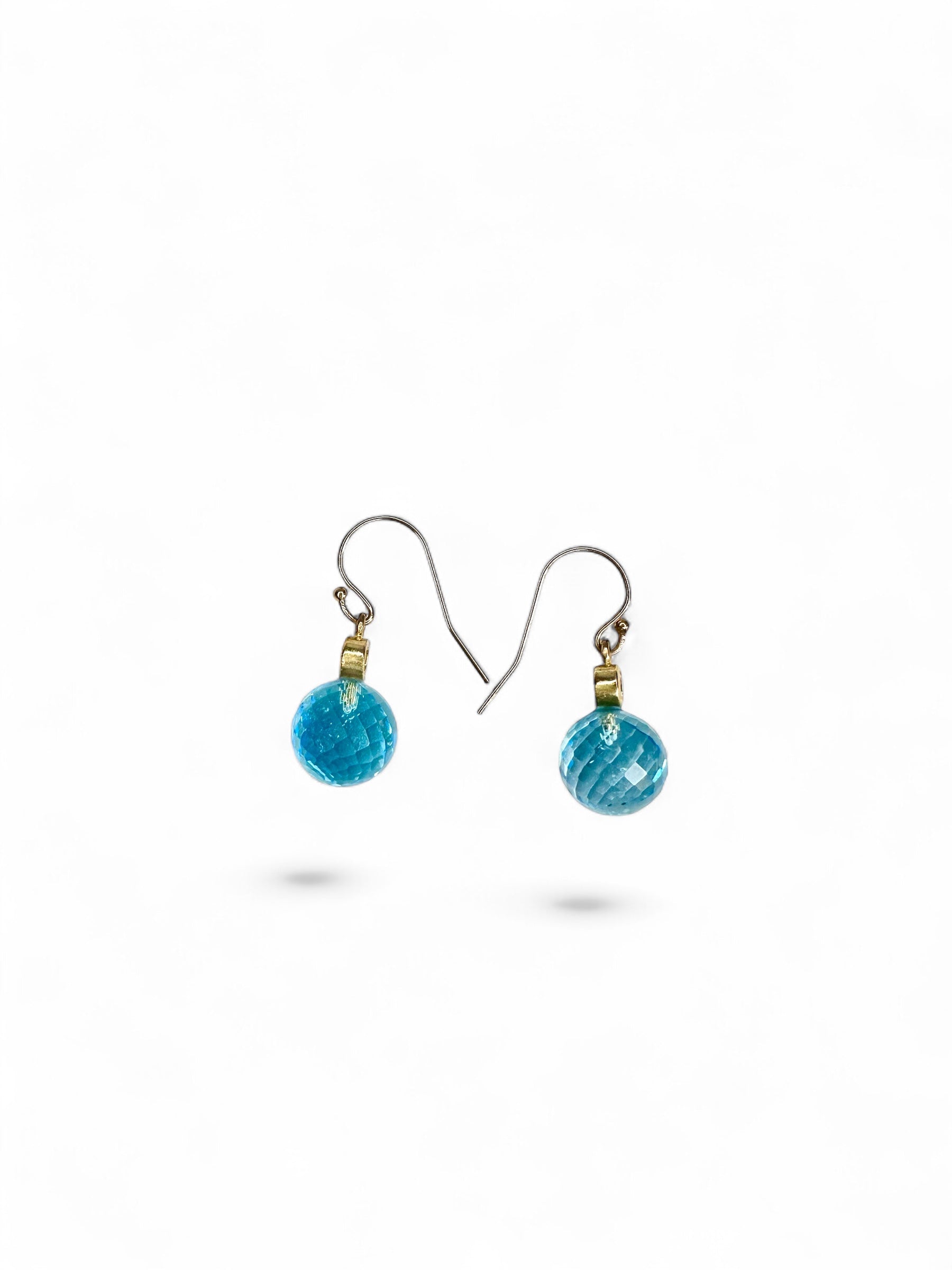 Elegant and timeless, these handcrafted earrings feature faceted aquamarine drops paired with sparkling rock crystal and set in warm 18k gold. A harmonious blend of serenity and brilliance — perfect for both everyday elegance and special occasions.