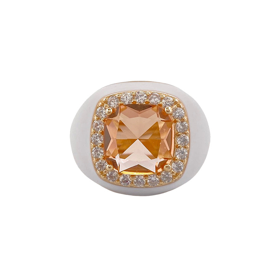 The ring's enamel design and stone create a seamless, cohesive look, with both elements being of the same color, making it a truly standout piece. The addition of little white cubic zirconia stones creates an extra level of glamour and sparkle.