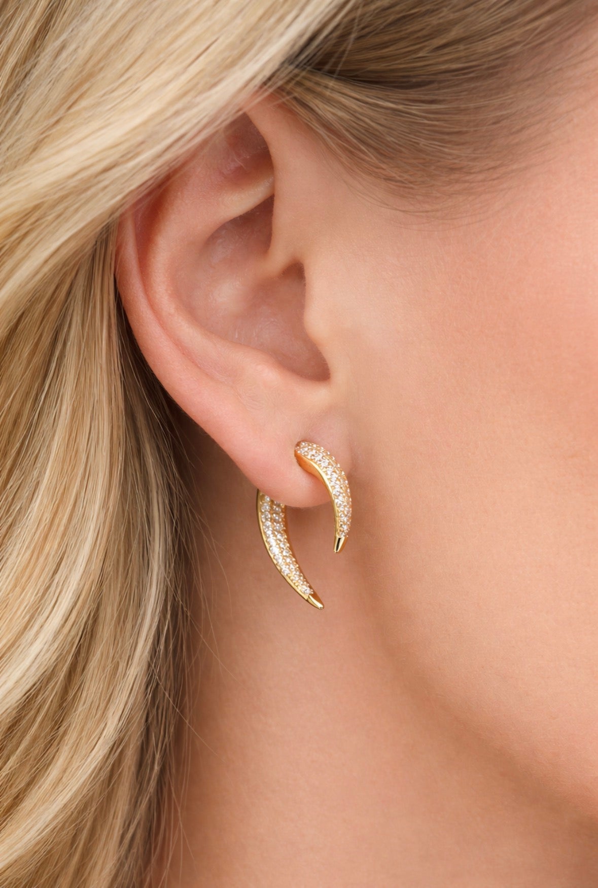 A versatile multi angle earring! Gold vermeil (thicker layer 18ct. Gold on silver) and cubic zirconia